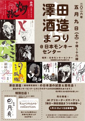 澤田酒造まつりに合わせて、JMCクリエーターズマーケットを開催します!霊長類に限らず、手作りのニッチなグッズが大集合!ぜひ覗きに来てください♪