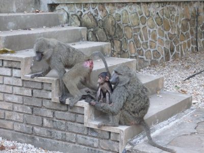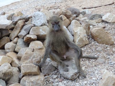 オリーブヒヒたちは、山に入らなくても、我々の宿泊施設まで毎日出てきてくれました。