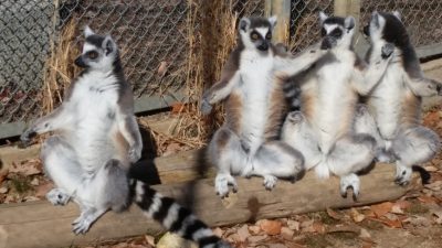 日光浴を遮る手が気になる Posted on 2019年1月27日 by keeper マダガスカル担当:坂口 朝方は冷え込んで、雲に覆われると、とっても寒むかったですが、太陽が出ると暖かいWaoランドです。 ミンナ並んで日光浴。 気持ちが良さそうです。 隣の方の広げた腕の場所が、太陽を遮ったのでしょうか?少しだけど、不快な表情に見えました。 「手が邪魔だよ~。」 「なんスか、ただ手を広げただけっスよ。」 「だから、退けてよ~。」 「お?やんのか?」 みたいに、見えました。 はい、仲良し、仲良し。 太陽は、ミンナのものだよ~。