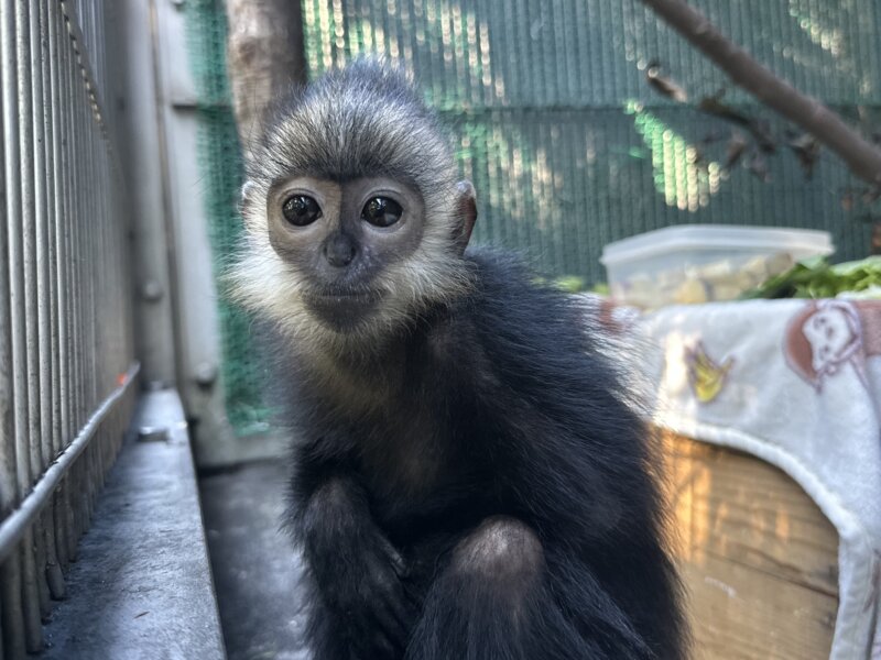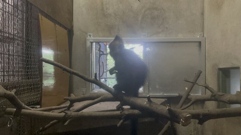 アジア館には、虚弱体質個体や人工哺育中のフランソワルトンのヨウのために電気ヒーターを2台。