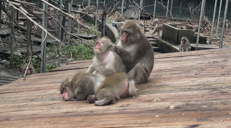 サルの群れ社会は複雑でまだまだ理解しきれていない部分も多々あります。ニホンザルの丘の群れでもおそらく人が見て取れない部分で個体同士の複雑な絡み合いがあるのだと思います。それでも日々観察をして個体間の友好関係をある程度知ることができれば、順位変動があったときや何らかの事態で個体を群れから分離させなければならなくなったが1頭だと不安からくるストレスが懸念されるときなどに個体にとってより良い判断ができると思い調査を始めました。