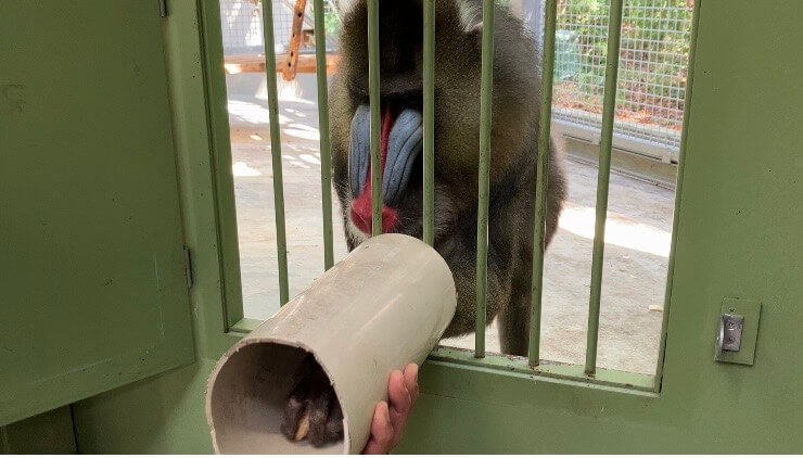 ほどなく、施設変更の許可(マンドリルも特定動物のため、軽微な施設の変更でも自治体への申請や届出が必要です。)がおりるので、本格的にトレーニングを始めていきたいです。