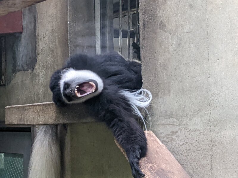 こちらはアンゴラコロブスのポールがプラタナスの葉っぱをおいしそうに食べている動画ですが、ここ最近はプラタナスの葉っぱを好んでいない様子です。2022年の時は固めの部位も好んで食べており、振り返って見るとエサの好みもしっかり変わっております。