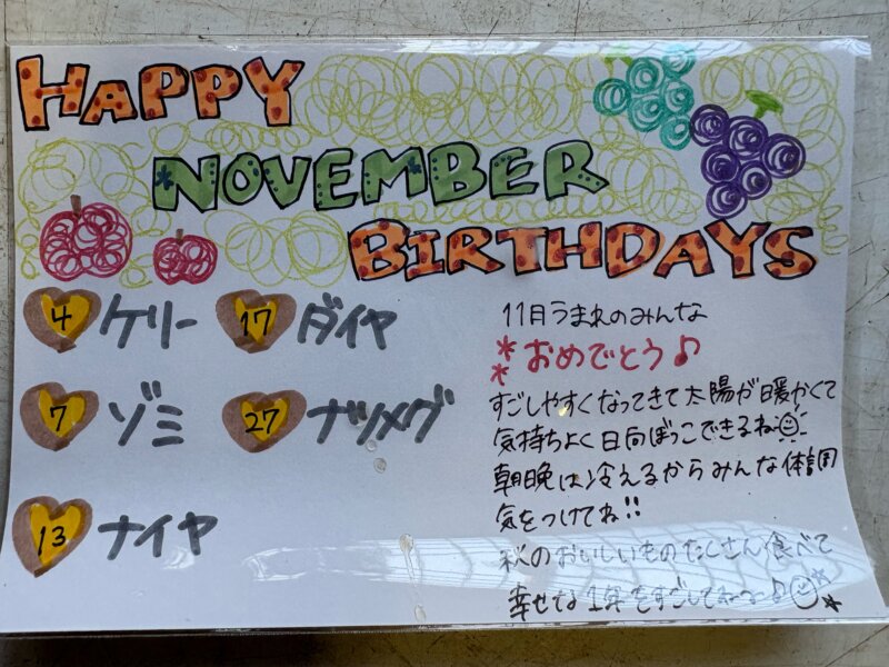 皆さんこんにちは!11月といえばポッキーの日、、よりもトッポが好きだしそれよりもプリッツが好きだからプリッツの日!、と言いたいところですがやっぱり飼育担当者としては「ヒ(1)ヒ(1)の日」でしょう!(ワン「1」ワン「1」も理由に入れたい)