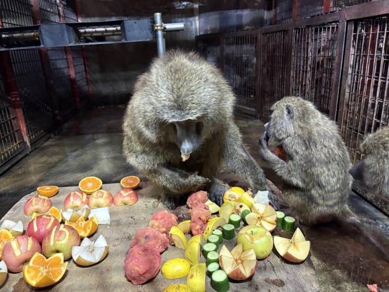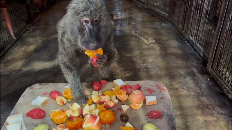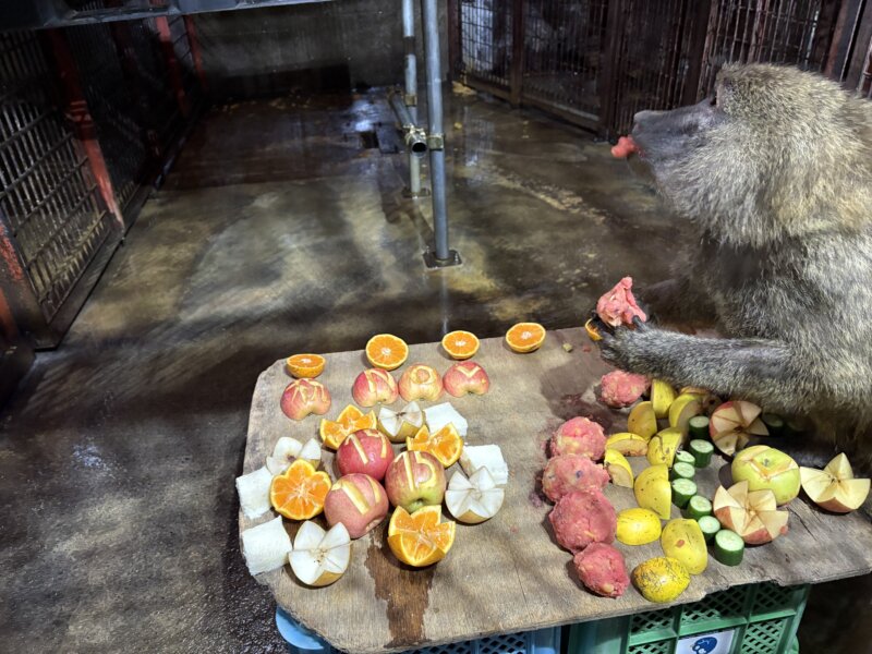 そんな今月のヒヒの城のバースデー・バブーンたちは、ナイヤ(27歳)、ゾミ(19歳)、ケリー(17歳)、ダイヤ(17歳)、ナツメグ(15歳)の5頭です。みんな誕生日おめでとう!!