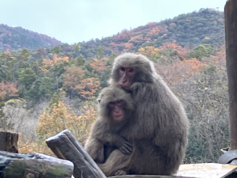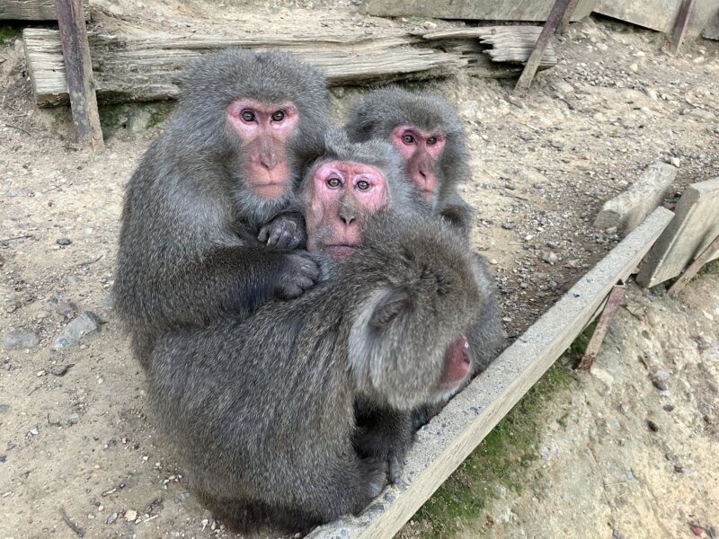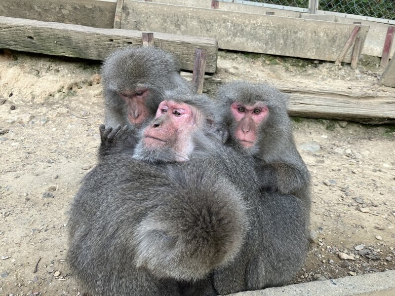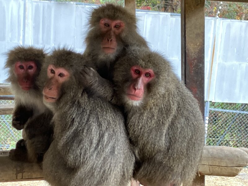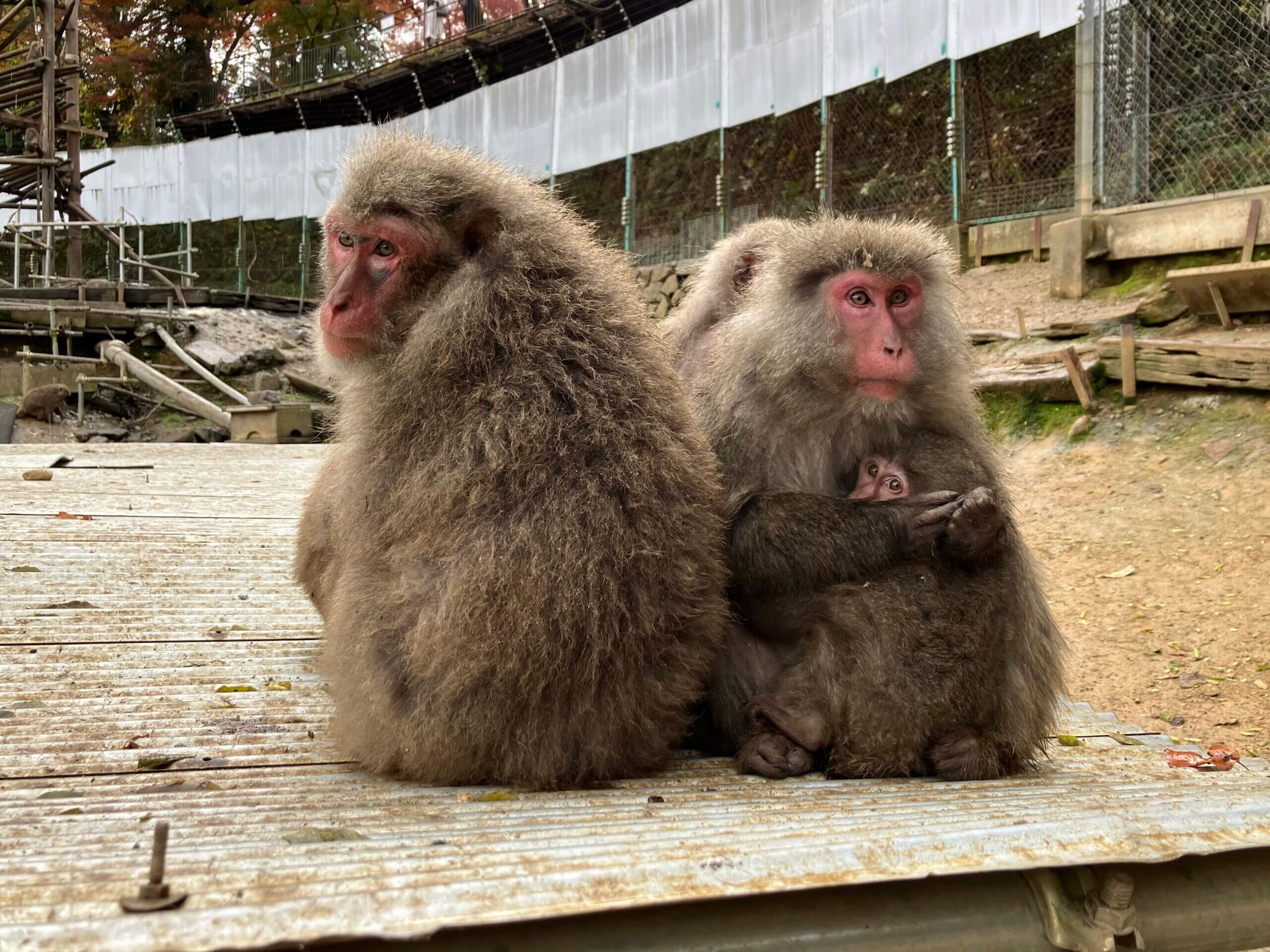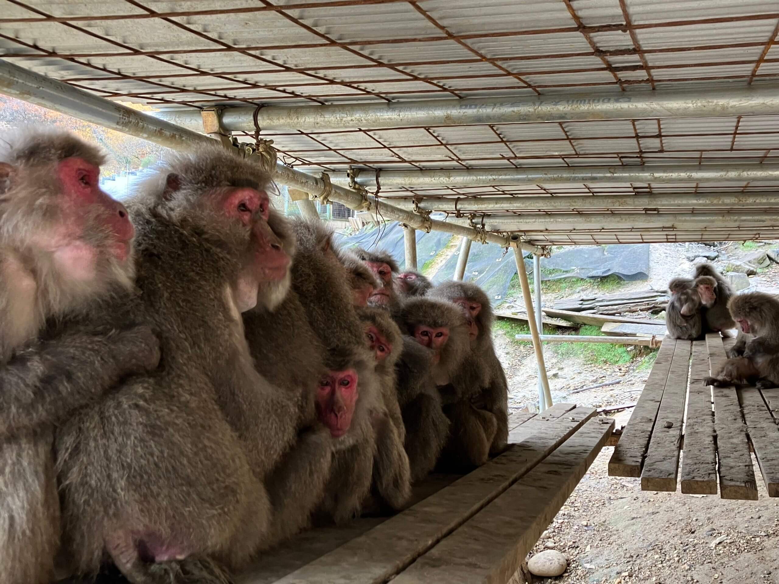 寒さも増してきたモンキーバレイでは、サルたちが身を寄せ合って寒さをしのぐ、