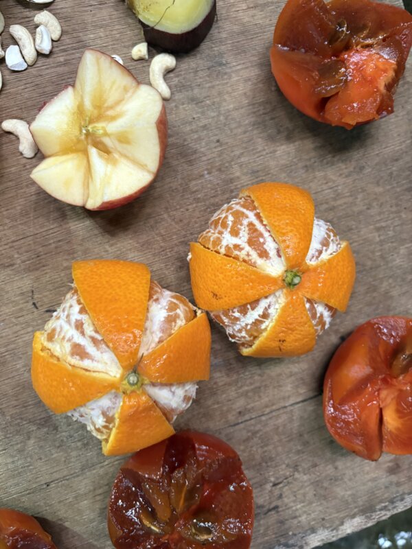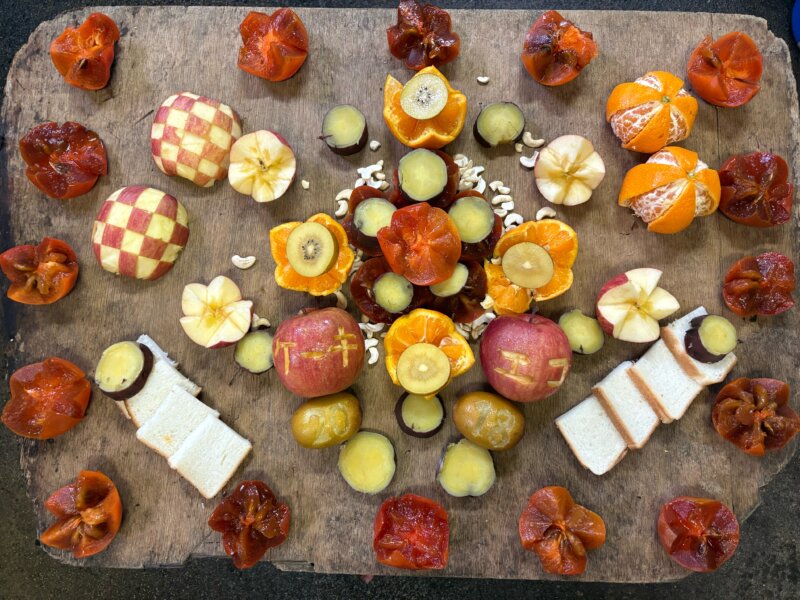 使用材料にはその他柿、ムシイモ、パン、みかん、ナッツを使っています。