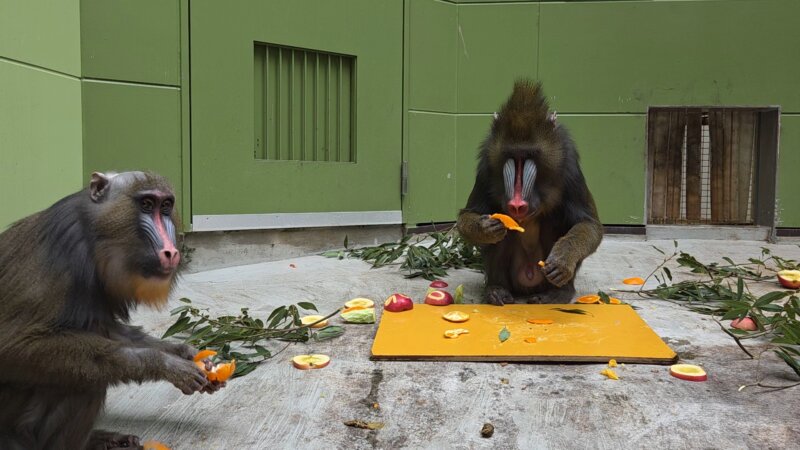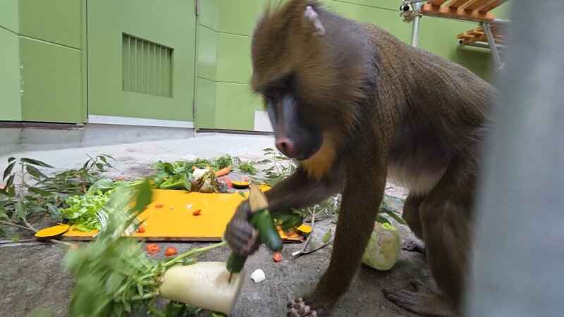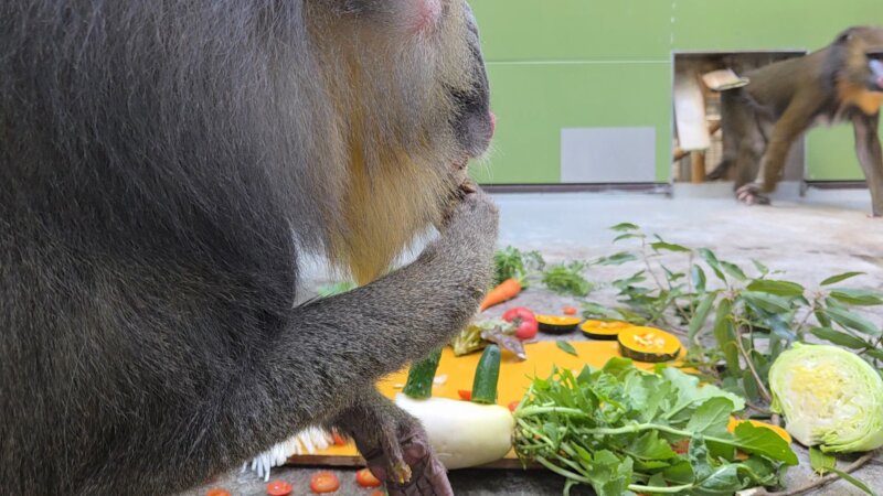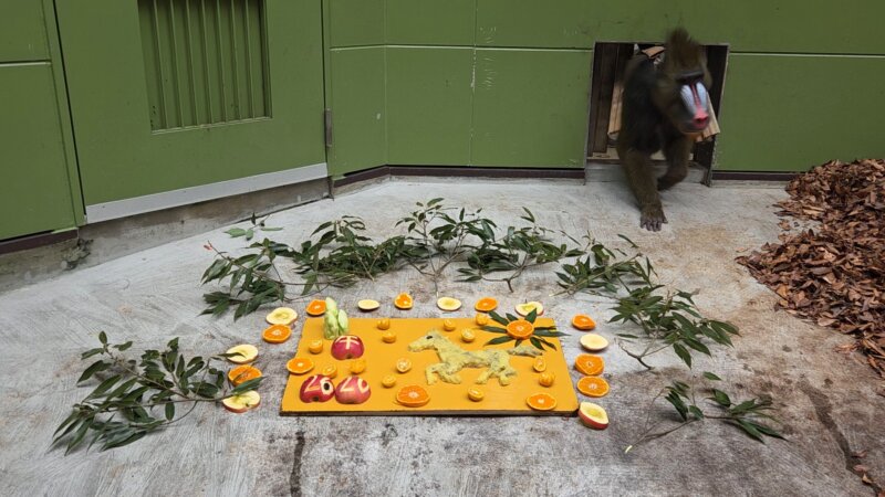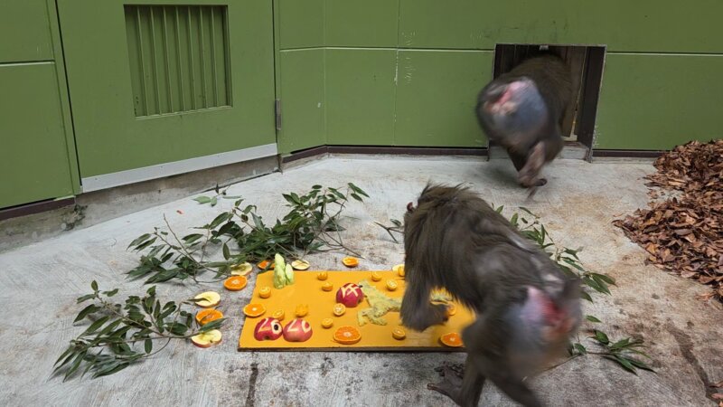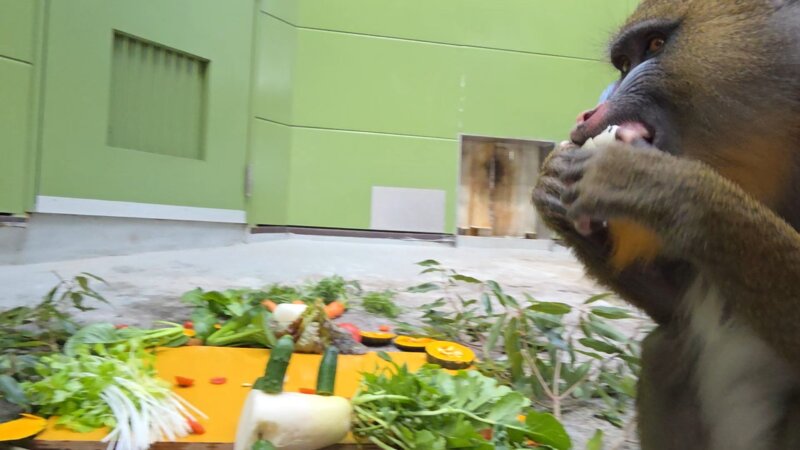 来園者さまにご覧いただける、原野と森の家展示エリアのおせちは現地にて、1/11(日)13:00~アビシニアコロブス、マンドリル、マントヒヒ、パタスモンキーたちにふるまいます。ぜひお越しください。
