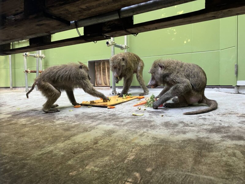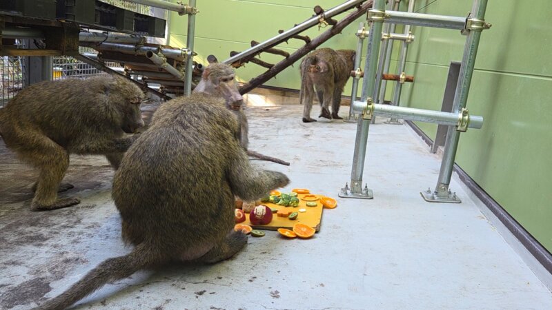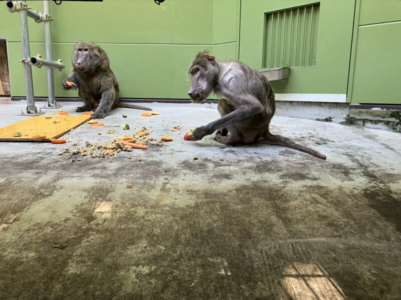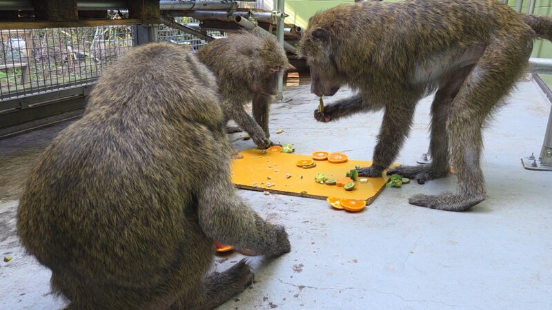 モンキーセンター恒例行事のサルおせち(飼育員手作りのサル用おせち)を、原野と森の家の非展示エリアメンバーにふるまいました。