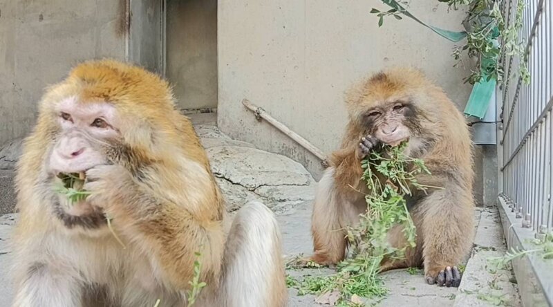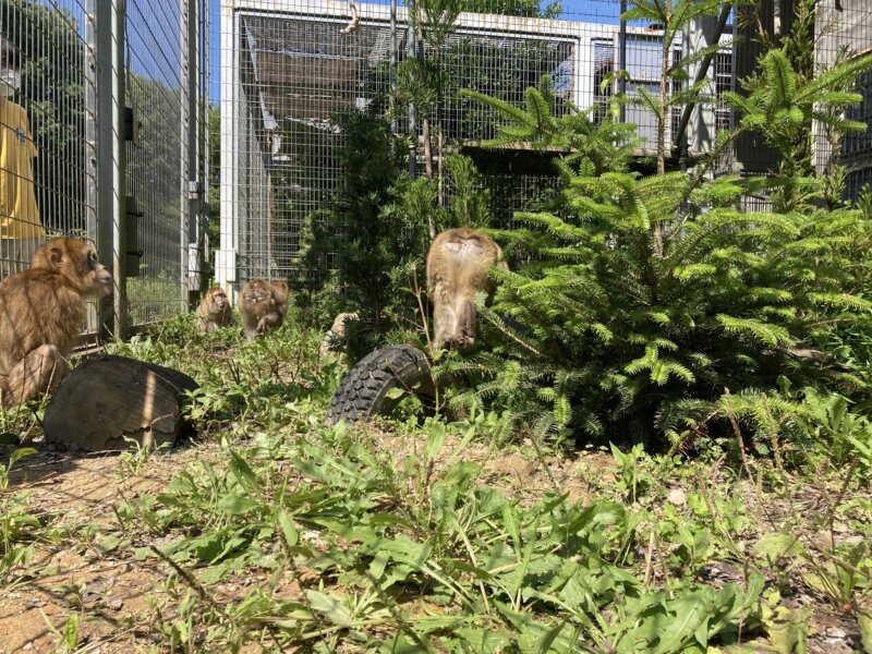 そんなタロウさんがいる一方で、タロウさんよりも草木をよく食べる印象の、バーバリーマカクたち。