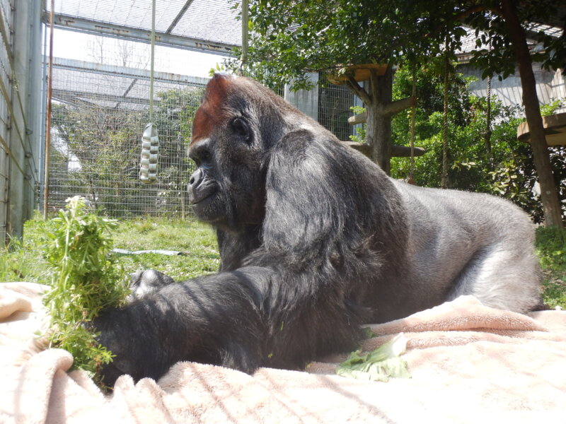 葉っぱをたくさん食べるといえば、ゴリラのタロウさんです。
