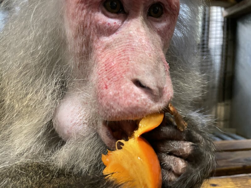 ヤクシマザルのタイマツには、柿やみかんなど、旬の食べものをたくさんいただいております!