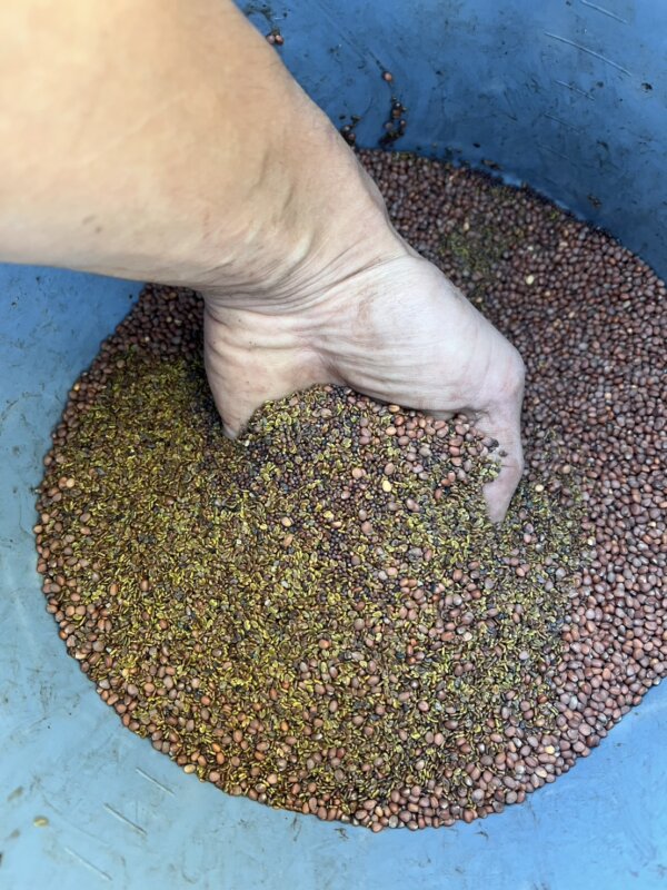 ダイコンやミツバ、レンゲ、イネ科の植物の種など複数撒いています。
