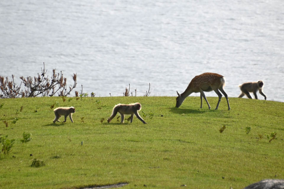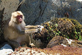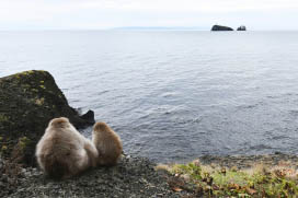 寄せては返す波の音、頬に優しくささやく南風、沖を走る漁船のエンジン音。採食、移動と海岸線を利用するサルの群れ。岩の上でグルーミングすることも珍しくありません。眼下に見下ろす大海原、サルの目にはどのように映っているのでしょう。