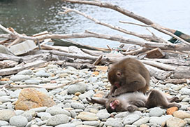北アルプス南部、梓川上流の標高約1,500mに位置する上高地は、ニホンザルの生息地としては最も寒い場所の一つです。無雪期には年間100万人以上が訪れる山岳景勝地でもあります。