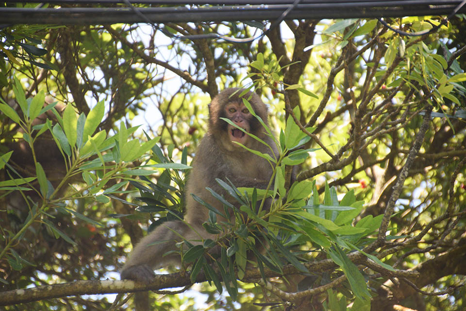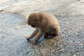 高知県のほぼ西端、ダイビングなどで有名な柏島に向かう途中の大月半島に、野生ニホンザル2群およそ100頭未満が生息しています(大月町役場提供:2018年の調査結果)。ここでは1957年から観光目的での餌づけが始まり、大月町の管理により「大堂お猿公園」が運営されています。現在はあまり積極的な餌付けはなされておらず、お猿公園内でサルが見られるとは限りませんが、周辺の道路や山林で野生のサルがよく目撃されています。