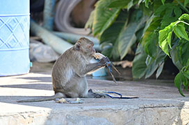 タイ南部に位置するレムソン国立公園のPiak Nam Yai島には9群200頭弱のカニクイザルが生息しています。全ての群れで石器を使って海産物を割るなどして食べる行動が見られ、食べているものを食べたところ、47種(動物43種、植物4種)も同定することができたそうです。
