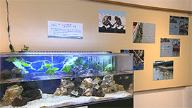 そのうち、日本で入手可能な種、もしくは近縁種を3つの水槽に展示しました。サルたちがどのように探し捕まえ食べているのか、想像してみましょう。