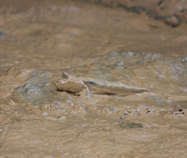 ホオヒゲオマキザルはマングローブ林でカニや貝類などの生物を捕食します。道具を使って硬い殻を割る、待ち伏せをして捕食するなど、さまざまな行動が観察されました。
