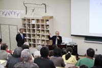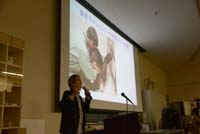 | 園長の伊谷による講演「飼育下におけるチンパンジー研究」。 |