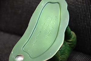 底面には「三十周年記念 財団法人日本モンキーセンター」と彫られています。 |
