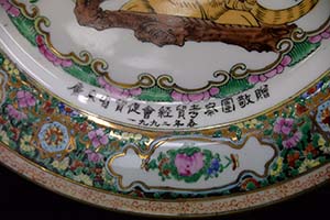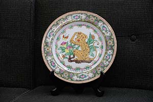 | キンシコウ日本初公開に関連した中国との交流を象徴する絵皿。元学芸員の水野礼子さんからご提供いただきました。 |