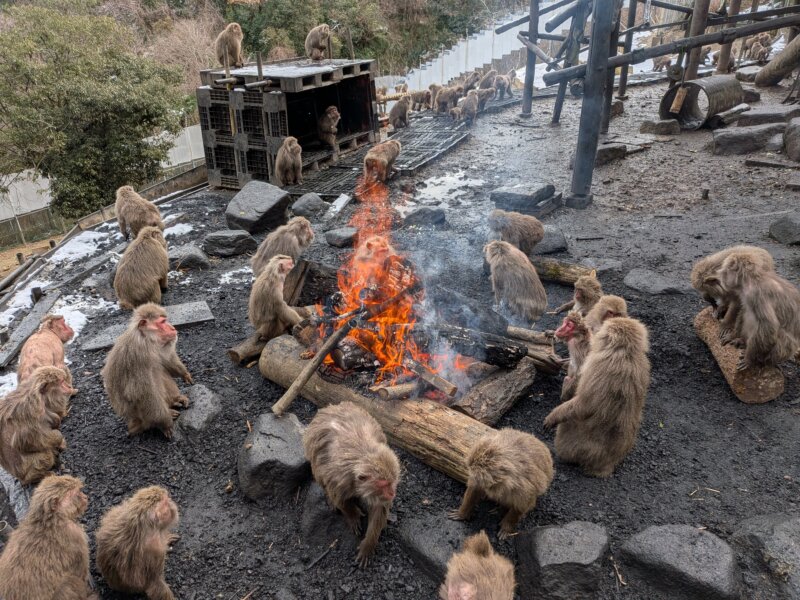 ↑今年も雪や曇りの日はいい塩梅でヤクシマザルザルたちが集まり暖まっておりました。