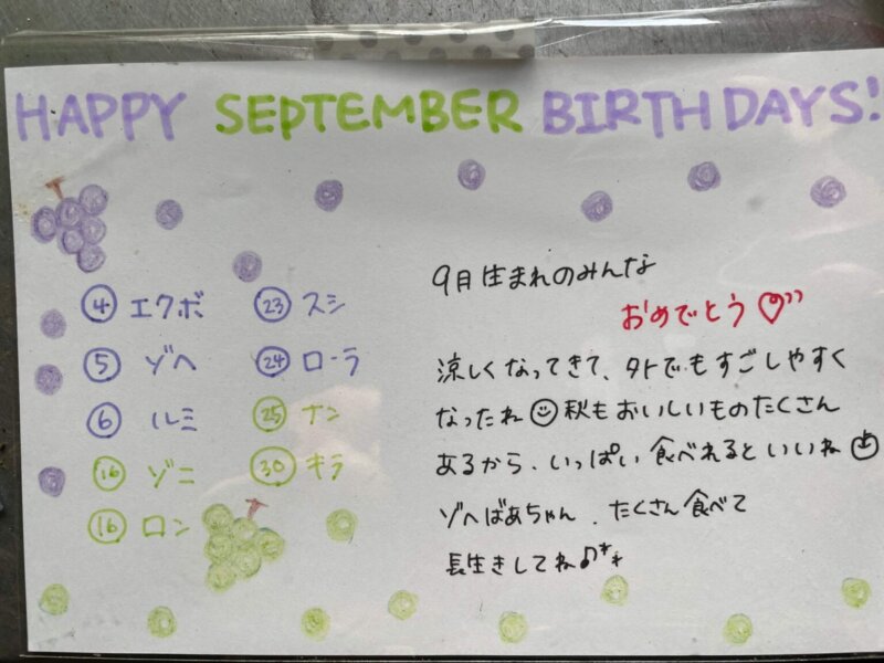 9月の誕生日会② Posted on 2021年9月19日 by keeper 北園担当:舟橋 前回の続きです 前回、ルミ以外の♀の誕生日を祝ったとのことで、今回はそれ以外の誕生日会を開催させていただきました。この記事を書き始めるまで名前の横の数字が一体なんのことを指しているのか不明だったんですが、書いている途中に気がつきました。誕生日だったんですね。ありがとうございます。 続きを読む →