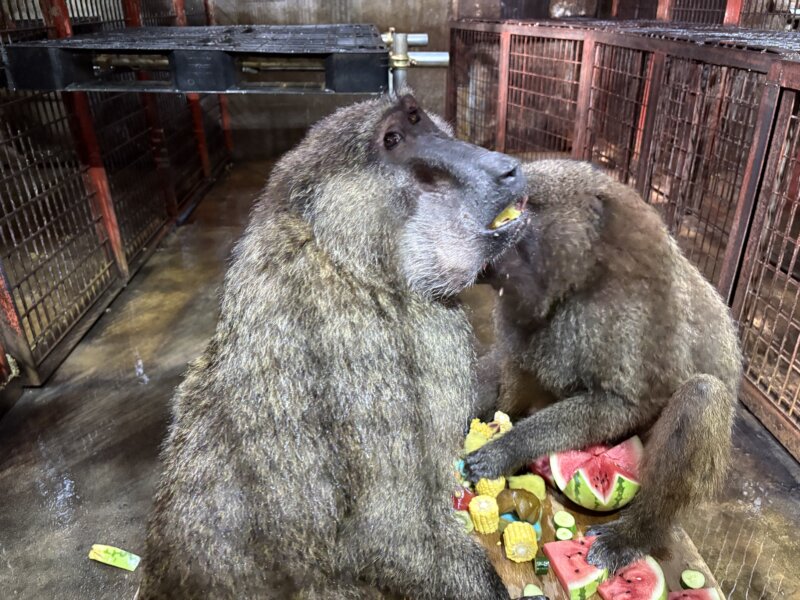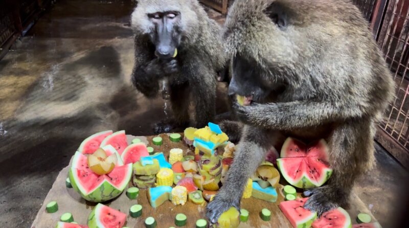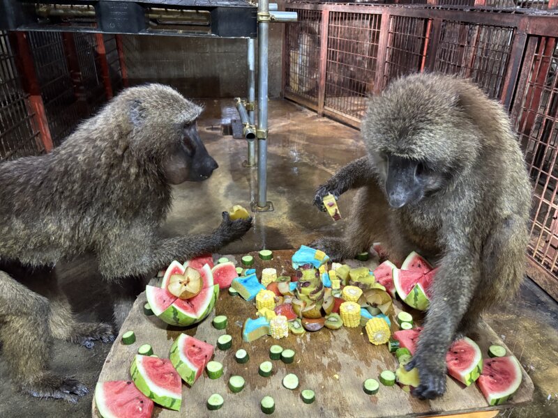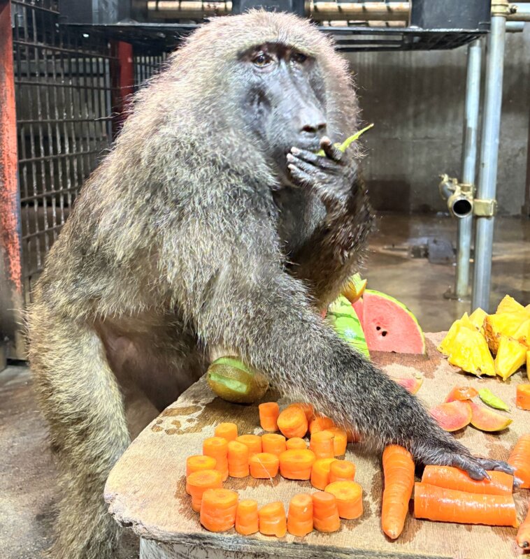 皆さまお待たせしました!8月生まれのアヌビスヒヒたちの誕生日会を開催させていただきましたのでその様子をご紹介いたします!