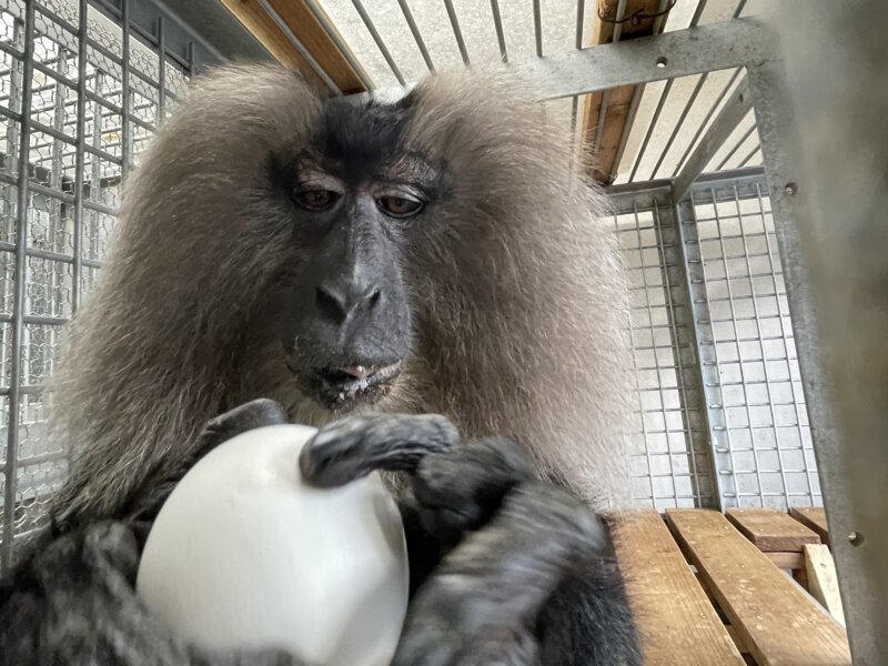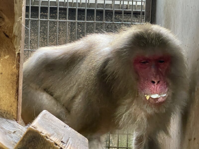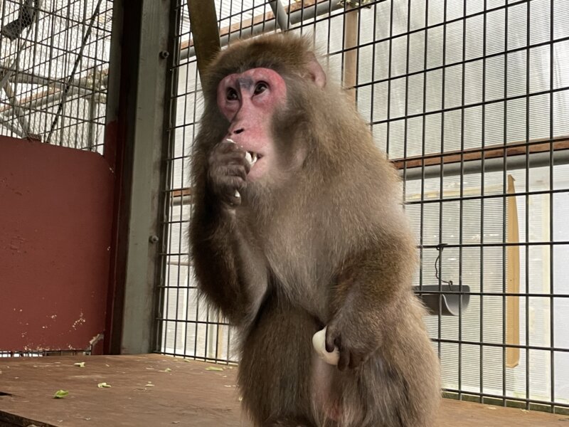 シシオザルのシッコク。最近、屋外運動場「おひさまエリア」に出るための練習を始めました!