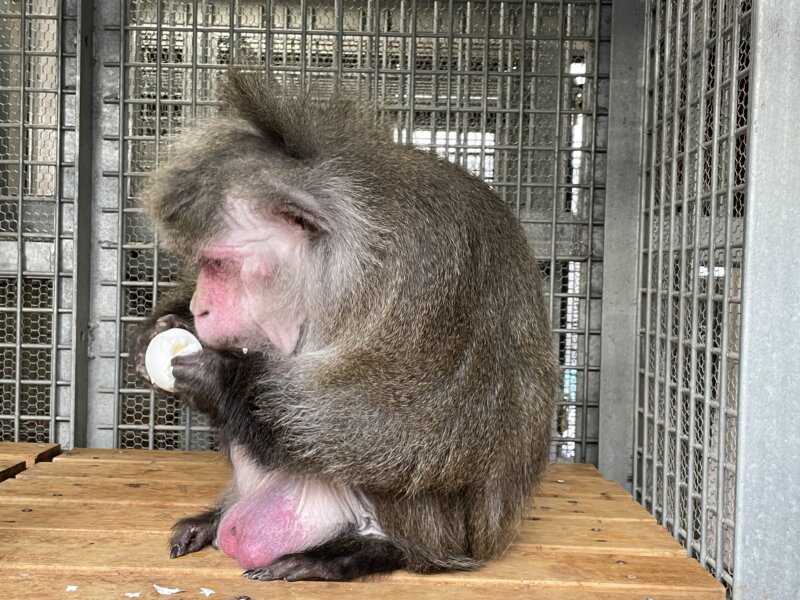 まずはカニクイザルたち。大きな群れが3群あるので、これまで彼らにゆで卵が振る舞われることなんてありませんでしたが、本当にたくさんいただいたので、彼らにも存分に味わってもらうことができました。その様子がこちら!