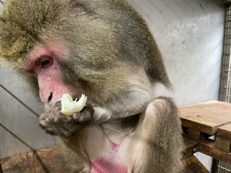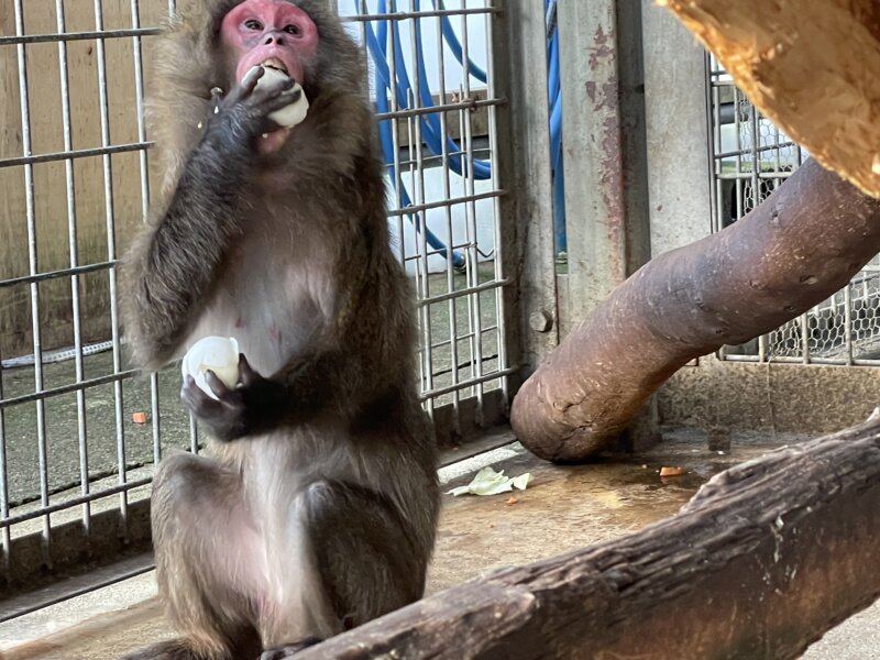 ヤクシマザルのタイマイも、寝ている時間が増えてはいるものの食欲は衰えません!