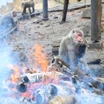 【2011.1.15】こんな寒い日は、たき火がいちばん!(モンキーバレイの冬の風物詩「たき火にあたるサル」)